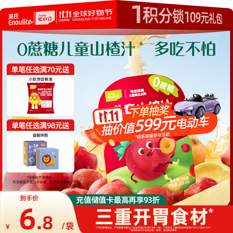 英氏 儿童山楂汁 100ml,弹4奍 会场,搜关键字下单0.3