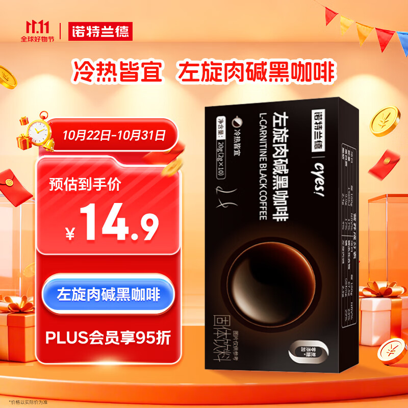 砸14-13券,拍下1.9亓 诺特兰德cyes左旋肉碱黑咖啡 10袋