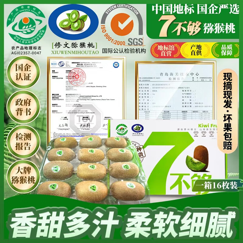 7不够 修文猕猴桃16枚装 拍下29.9亓 买1赠1到手2箱