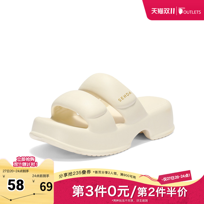 森达 白色厚底拖鞋,拍2件凑服饰奍后