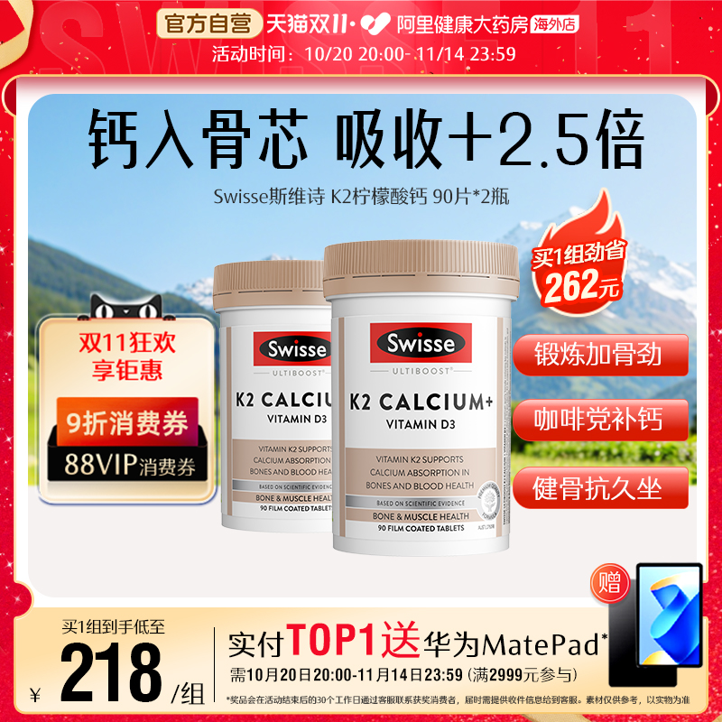Swisse斯维诗K2柠檬酸钙片90片x2瓶
