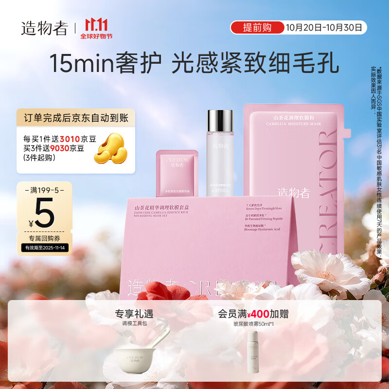 造物者山茶花精华面膜单次装 拍4件131.8亓 反120.4亓京豆