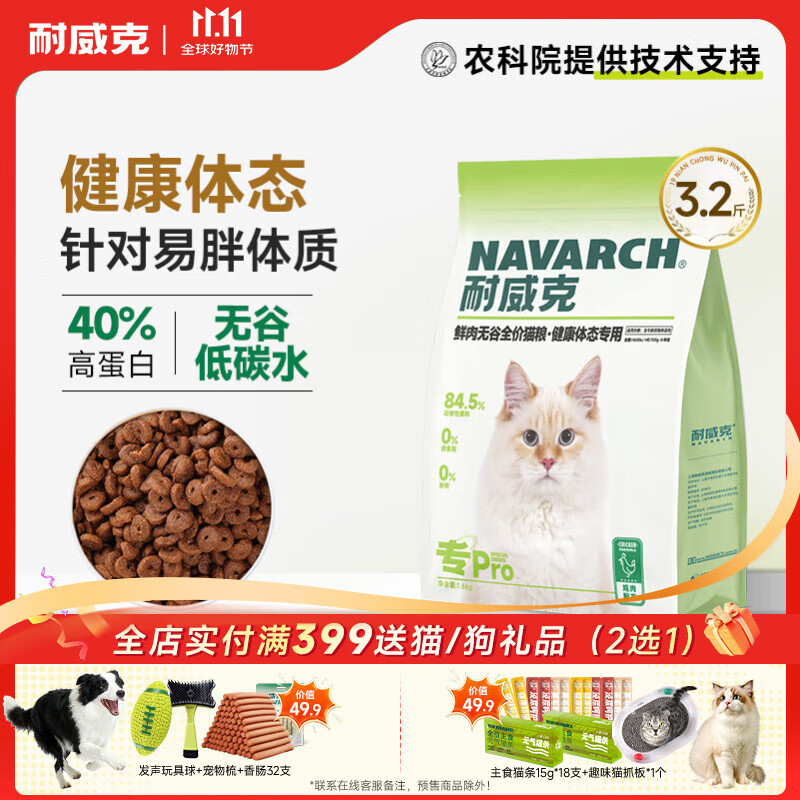 200-20奍 耐威克全价鲜肉猫粮 健康体态专用系列1.6kg 凑后8.