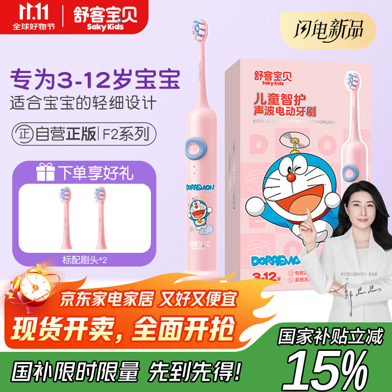 舒客宝贝儿童电动牙刷双重模式F2粉适用3-12岁