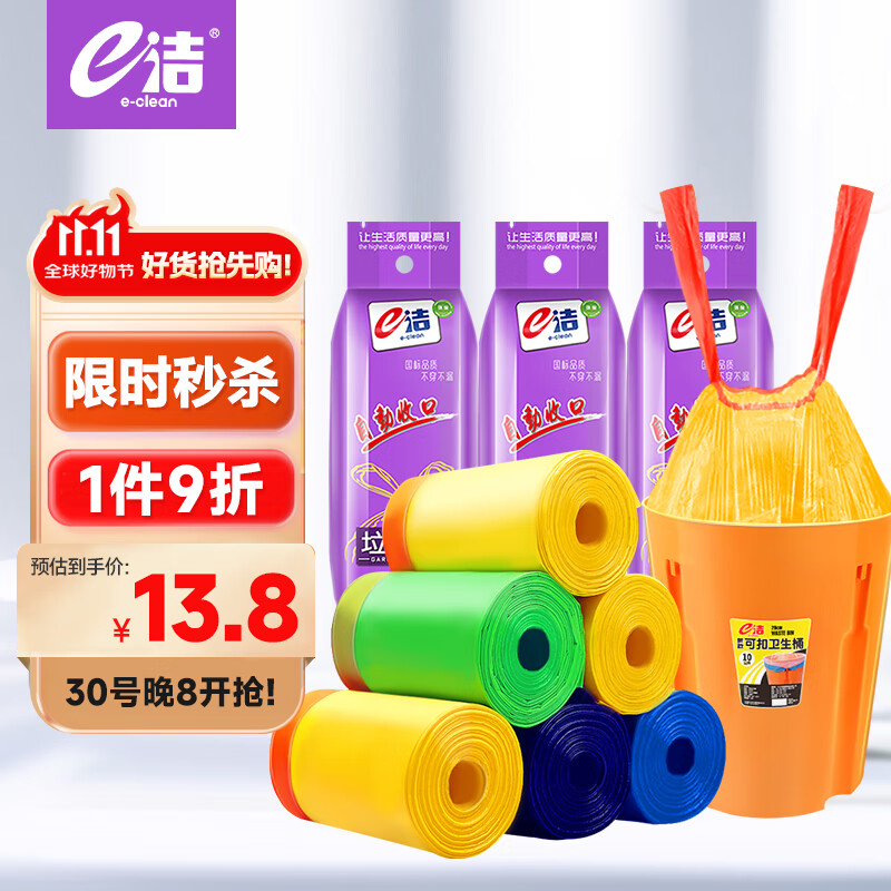 e洁抽绳垃圾袋2丝108只 需#小程序:京东够物 下单11.4亓