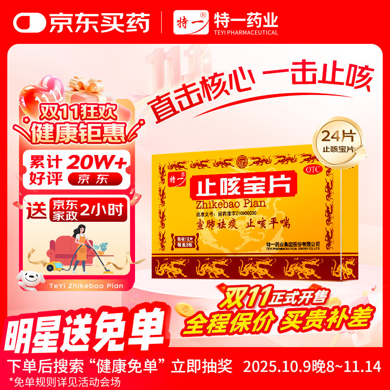 领膨胀9折券 特一 止咳宝片 0.35g*12片*2板 Plus凑后3