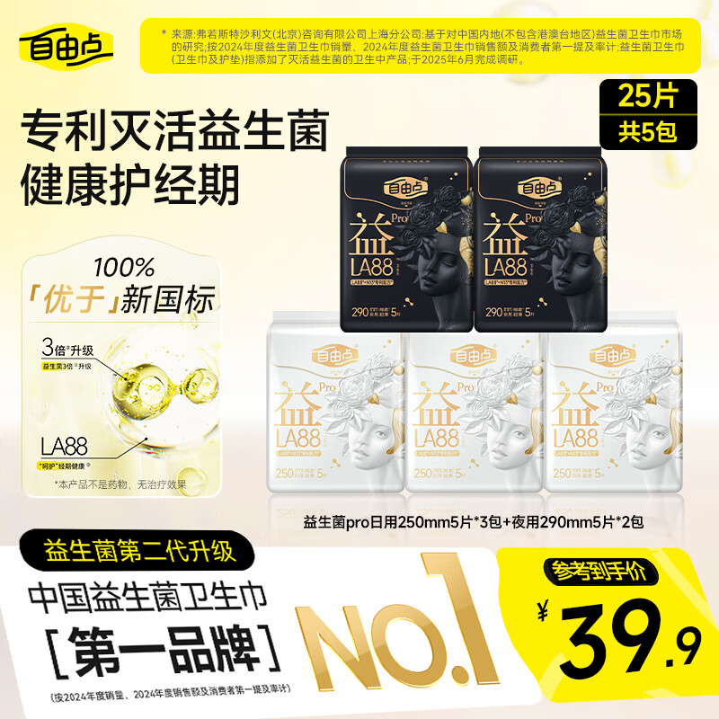 自由点益LA88 PRO卫生巾 专利日夜组合5包25片,拍1件 凑2件