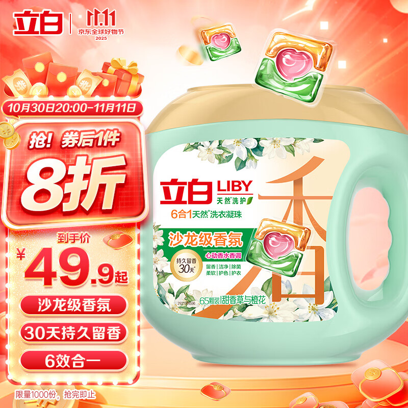立白沙龙香氛洗衣凝珠65颗 三腔 ,4首单 凑99-10奍,37返30