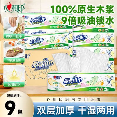 心相印厨房纸巾 60抽 9包 23.9 食品级厨房抽纸,干湿两用,厚实有韧