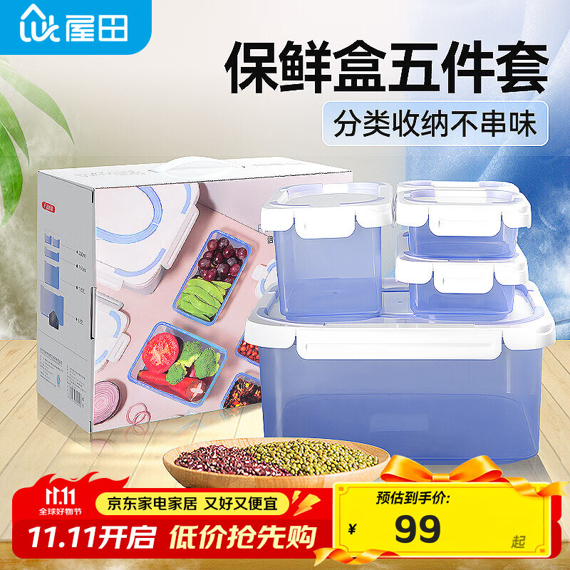111-11叠加200-20奍 屋田冰箱保鲜盒食品级五件套 叠补贴奍,凑后