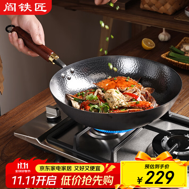如有直播5折凑499-40 阎铁匠章丘炒锅 氮化黑锅锤印30cm 凑后37