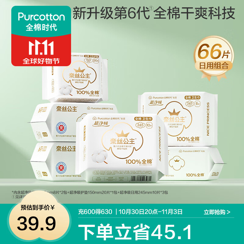 全棉时代医护级奈丝公主卫生巾组合245mm 46片 护垫20片