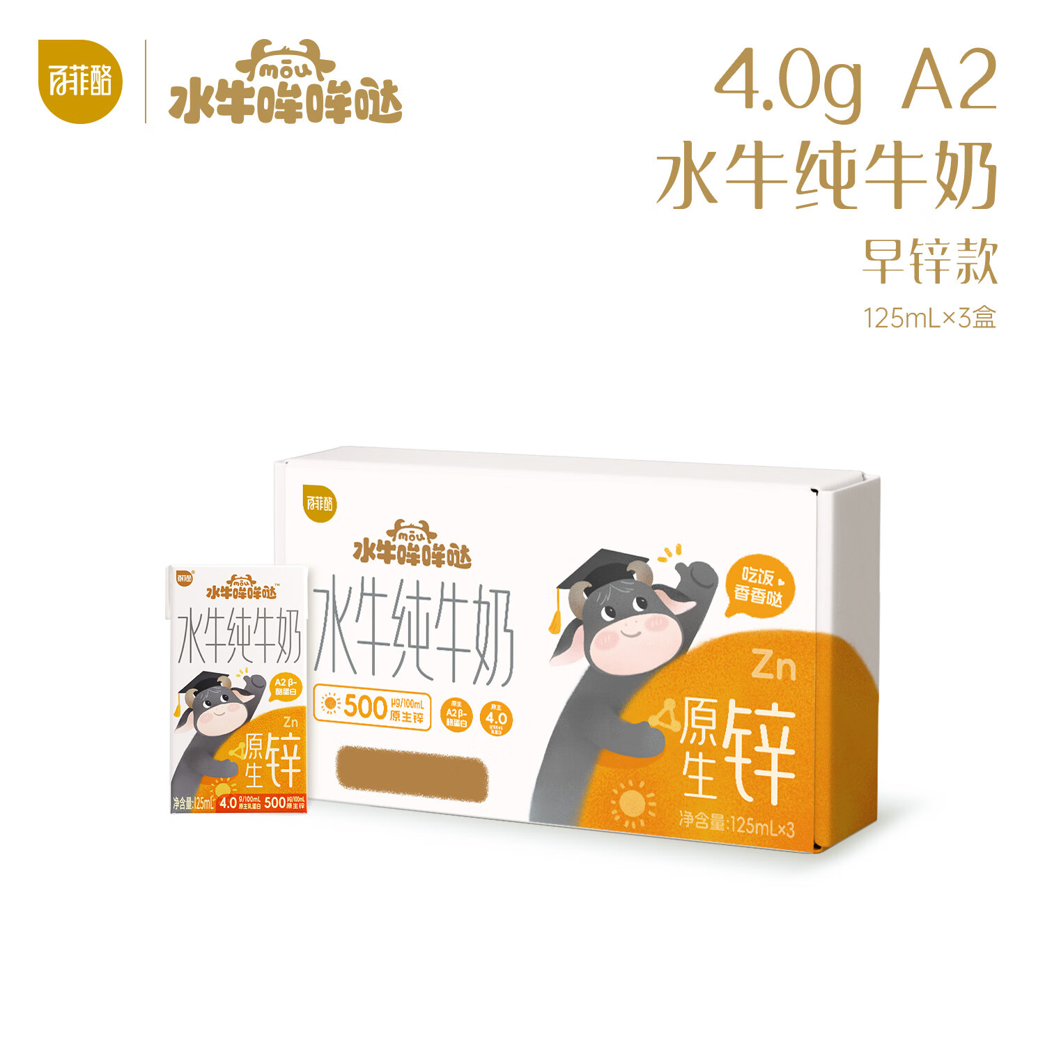 水牛哞哞哒 百菲酪旗下 A2水牛奶125mL*3盒