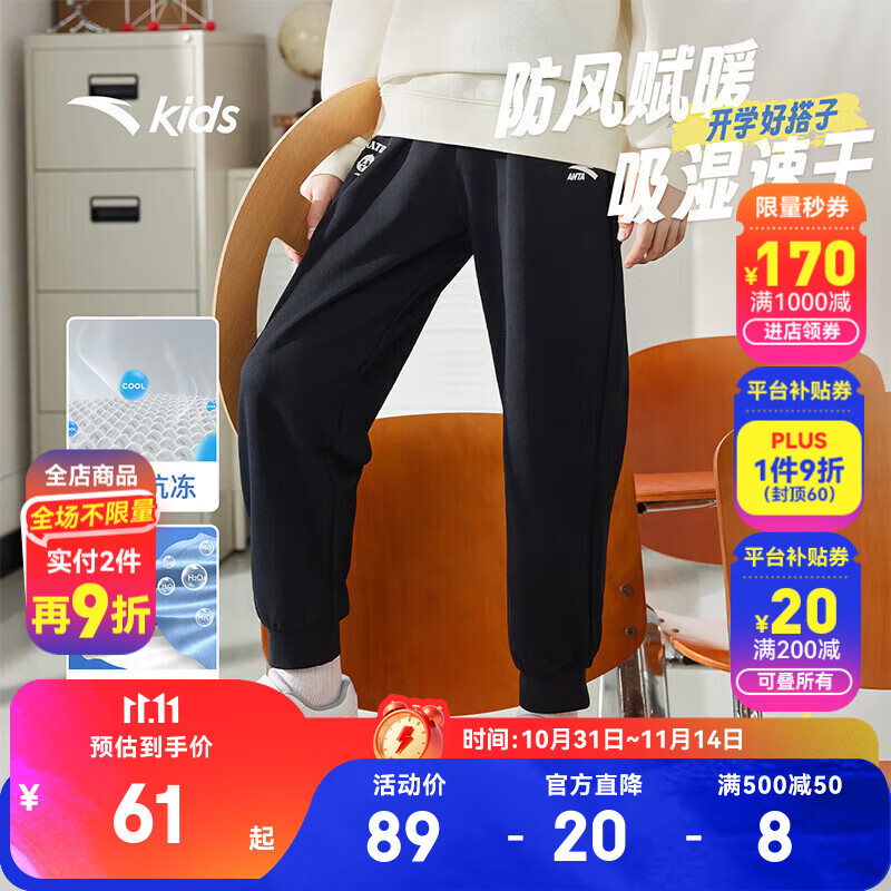 领2张券 安踏儿童综训运动裤 54亓 安踏儿童软弹元气跑鞋