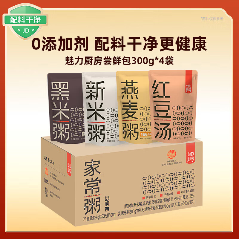 魅力厨房速食粥尝鲜组合300g*4袋,概率砸落14-13,叠李金0亓
