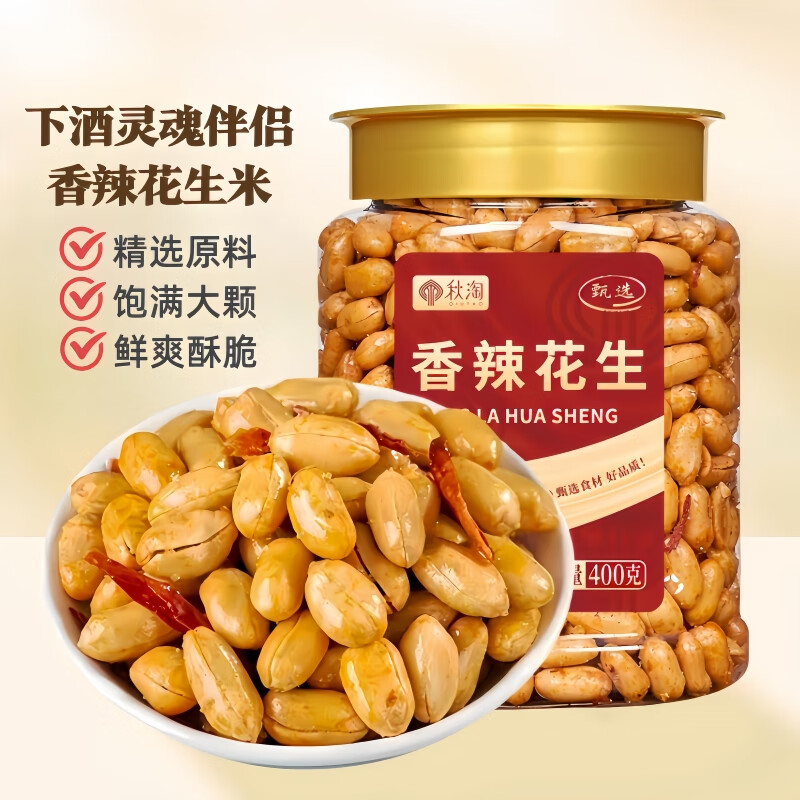 领券中心79-15券 秋淘麻辣花生400g/罐 拍6件,凑后,每件3.