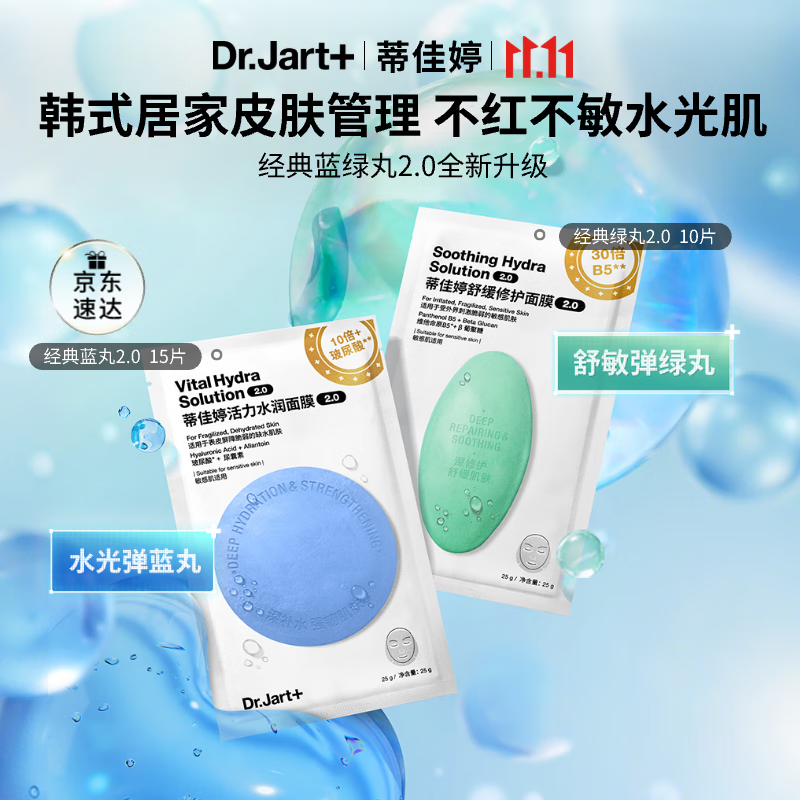 蒂佳婷(Dr.Jart) 蓝绿丸2.0升级 水光弹舒敏弹面膜5*5盒https://u.jd.com/TrD4lDJ
