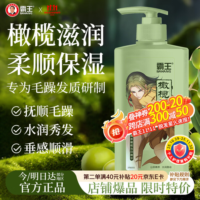 砸6券,1首单,拍下1.91亓 霸王 橄榄洗发水600ml