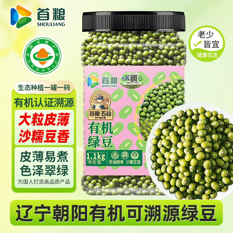部分地区有货 拍3付7.25亓 首粮东北有机绿豆2.2斤罐装