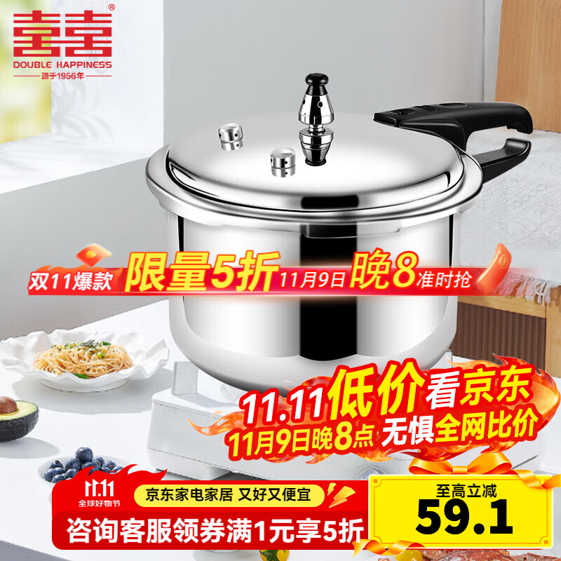 领5折券 双喜高压锅 明火燃气专用3.2L 59亓 304不锈钢压