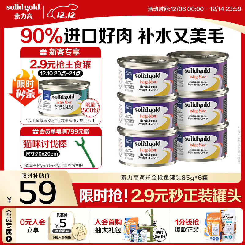 素力高(SolidGold)进口主食级猫罐头 金枪鱼85g*6