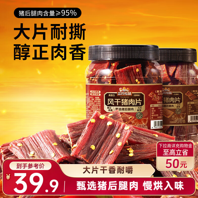 三只松鼠风干猪肉片250g香辣味,7.9