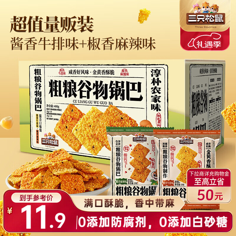 地区价 三只松鼠 粗粮谷物锅巴300g 3.9 三只松鼠 黑松露苏打
