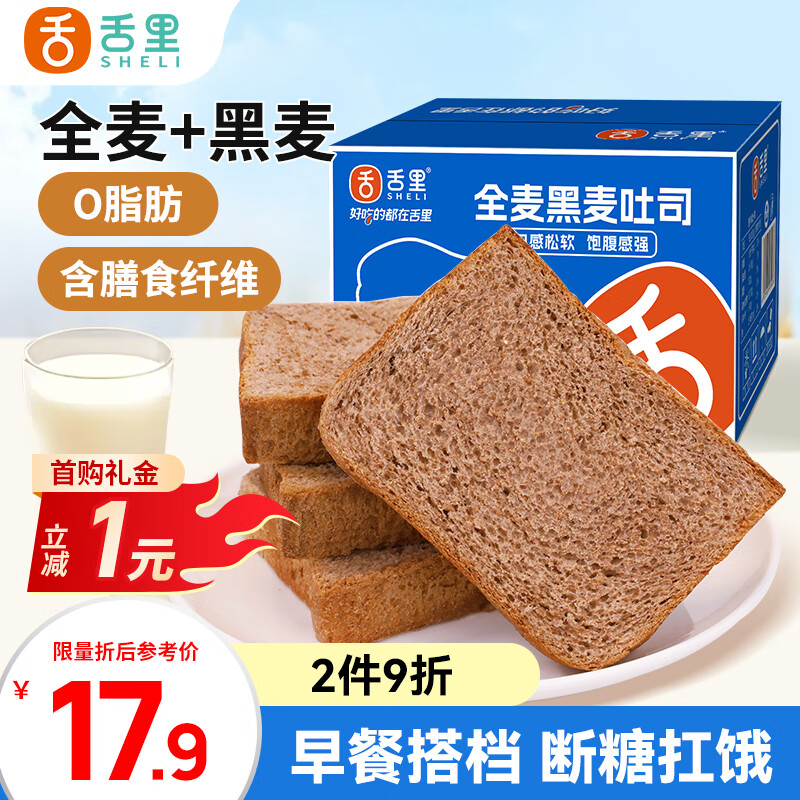 地区价 舌里0脂黑麦吐司面包650g 弹4立减1首单0.9