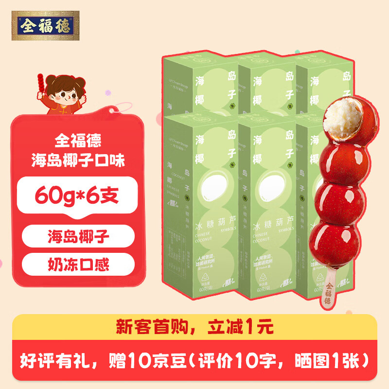 全福德 简餐定食 海岛椰子 冰糖葫芦60g*6支 入会价,凑后11.33