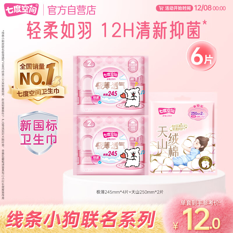 七度空间 天山绒棉线条小狗极薄透气试用装6片