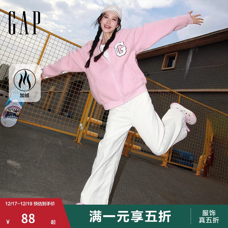 领5折卷 Gap秋冬服饰合集 仿羊羔绒开衫卫衣 88亓 微弹中腰