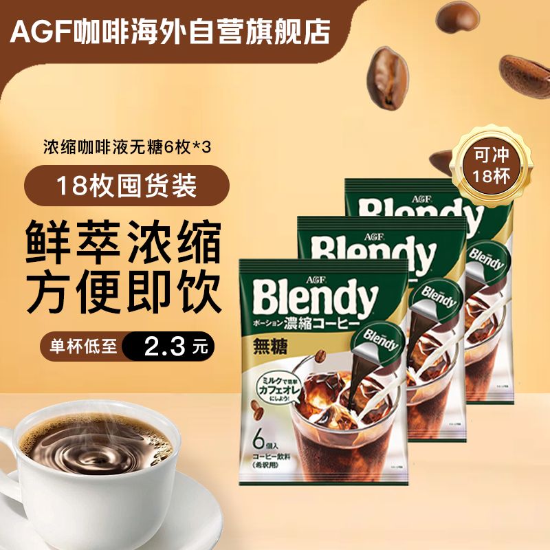 14.36元AGF浓缩胶囊咖啡液无糖18枚 Blendy速溶黑咖啡胶囊324g