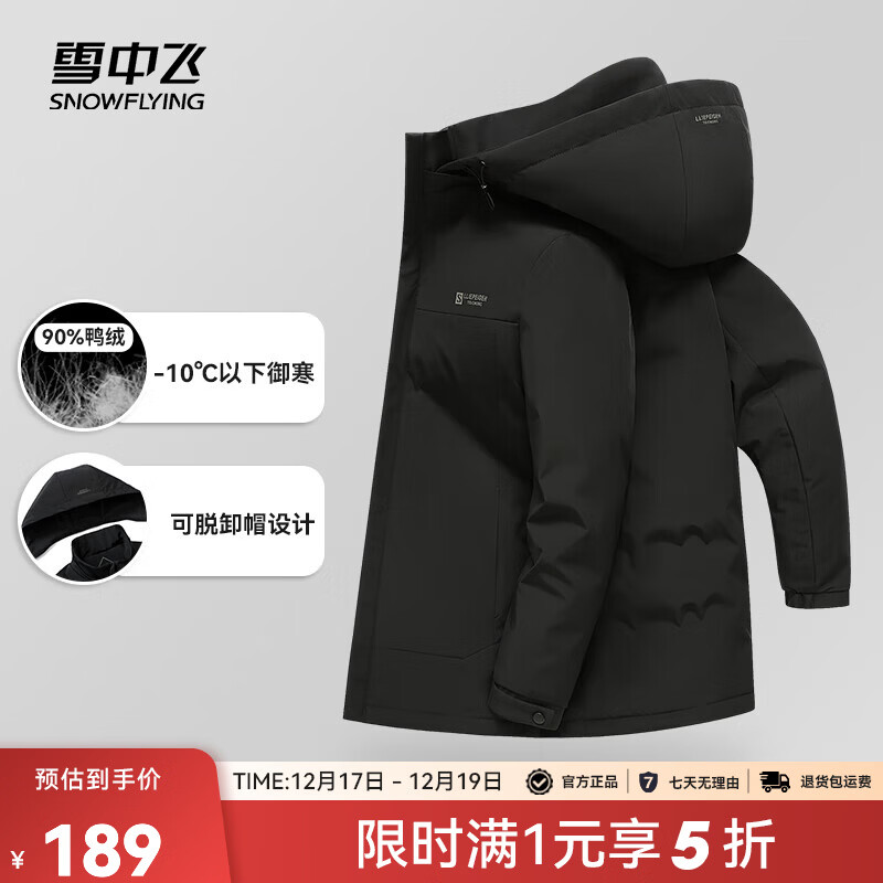 领5折劵 雪中飞夹克中长羽绒服 189亓