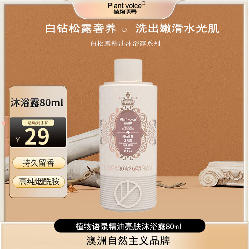 植物语录白松露葡萄籽精油亮肤沐浴露80ml瓶装