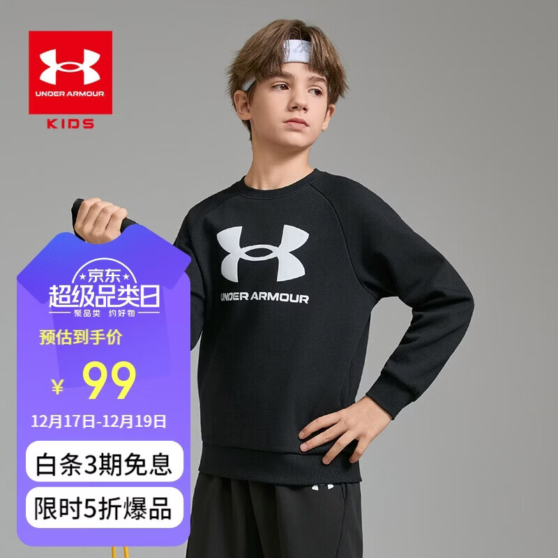 领5折券 UNDER ARMOUR安德玛童装 加绒儿童圆领卫衣 99