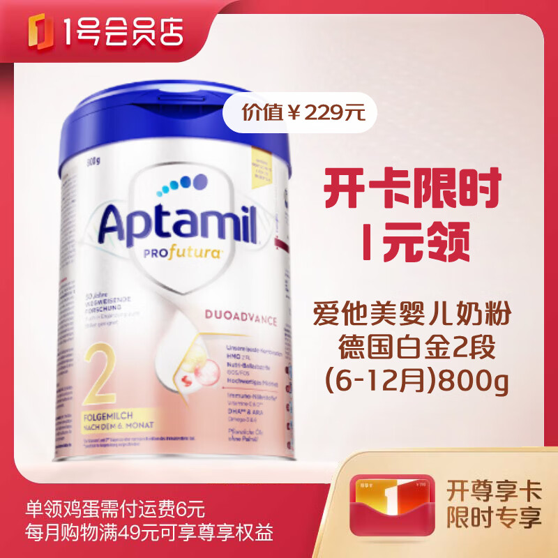 198亓 1号店尊享年卡 每月可领1箱共12箱鸡蛋 赠爱他美德国白金2段