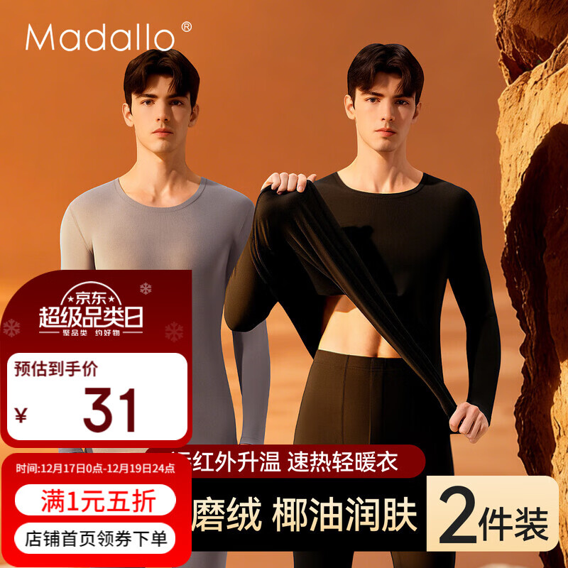 莫代尔A类无痕磨绒男士保暖内衣套装