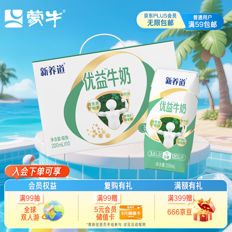 蒙牛新养道优益无如糖牛奶200ml*10盒