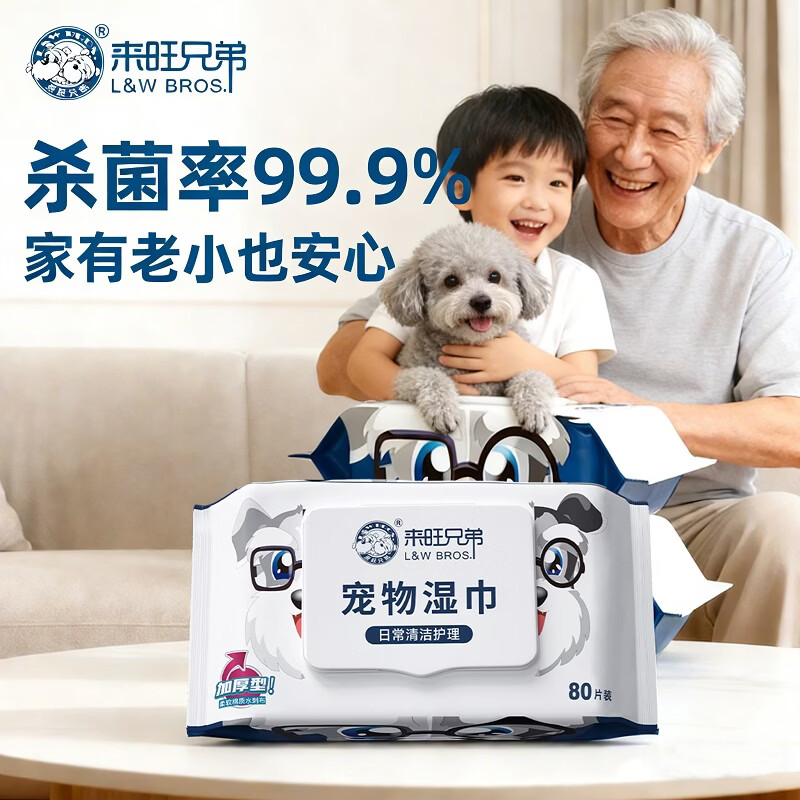 拍2付37.2 返30卡 来旺兄弟狗狗湿巾80抽x3包 - 拍2件付