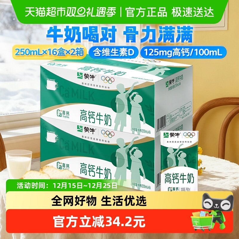 蒙牛 高钙牛奶250ml*16盒*2提
