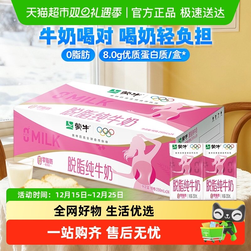 25.4亓安徽浙江等地过桃金币 蒙牛脱脂牛奶250ml*24盒