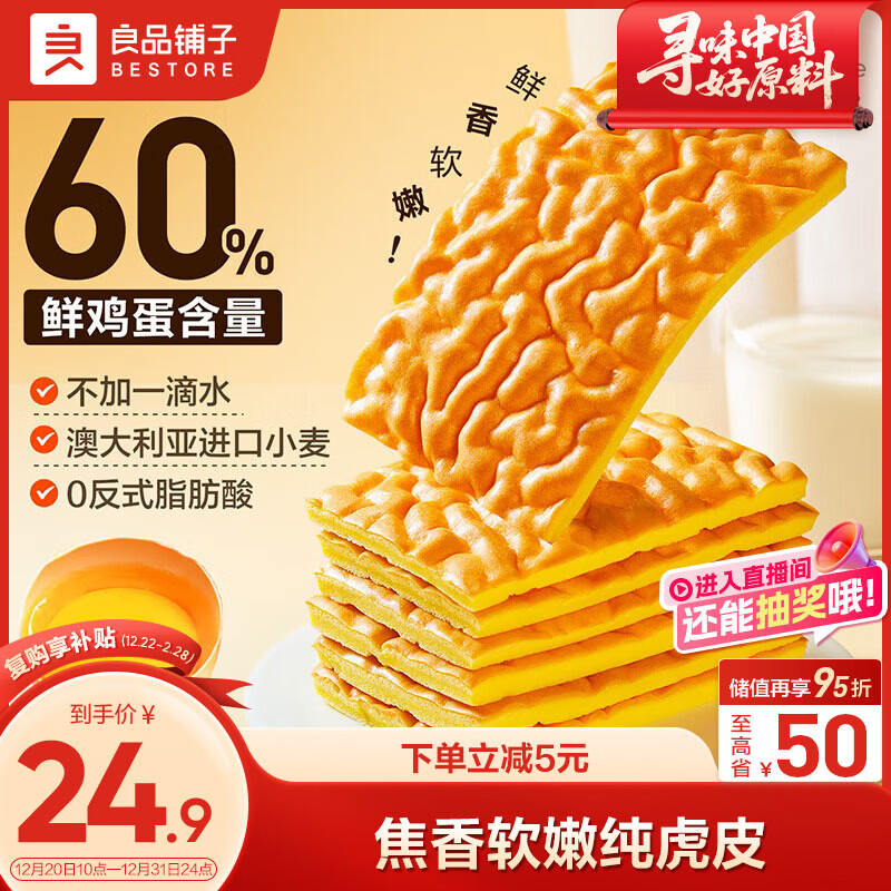 地区价 良品铺子纯虎皮蛋糕408g 6