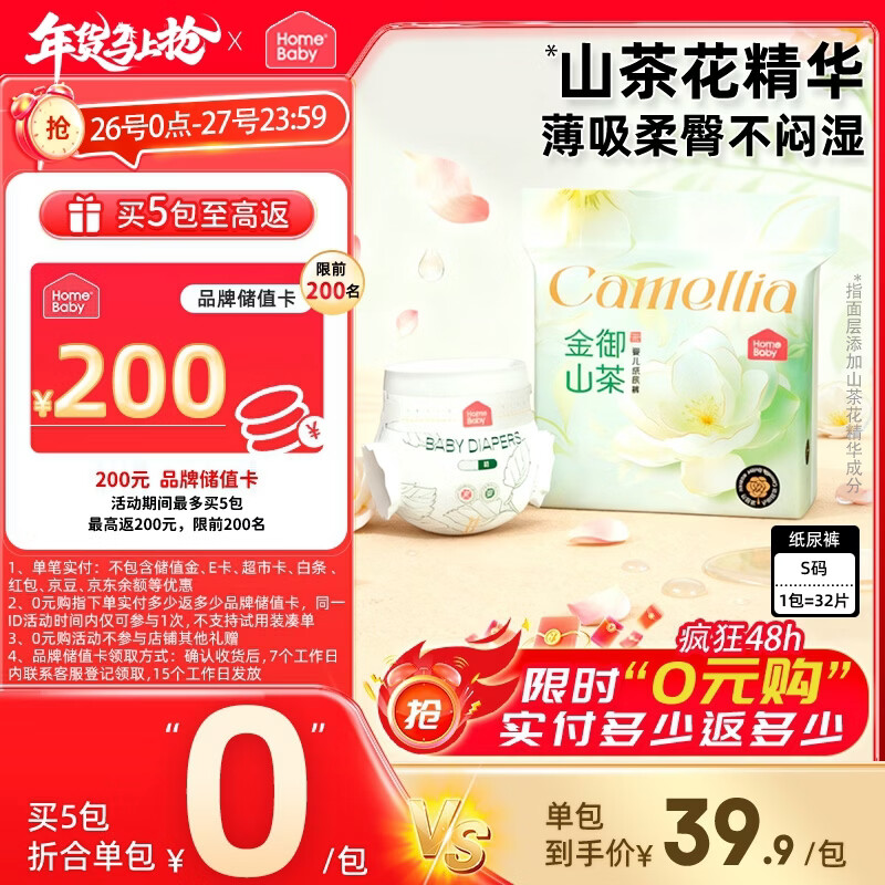 按需 家得宝金御山茶花尿不湿 39.9 限时反等额储值卡 上限200