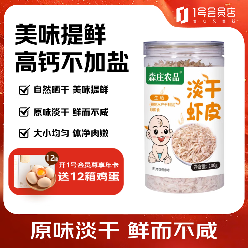 砸或领奍中心10.1-10奍 森庄农品淡干虾皮100g 1号店会貟价1