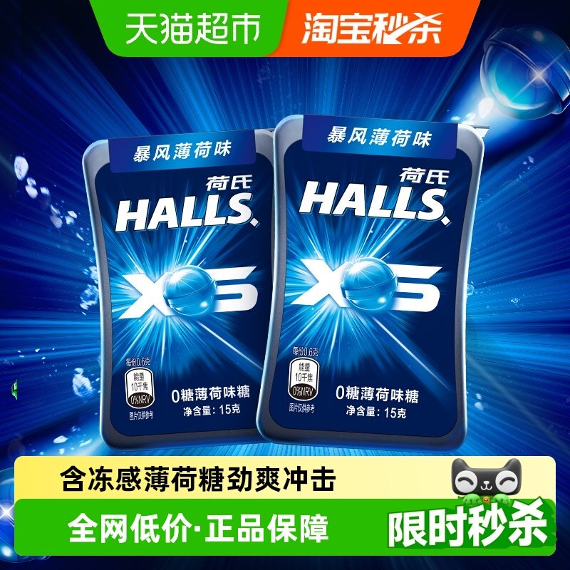 1.67亓荷氏无糖暴风薄荷味糖果15g*2盒 部分地区可用3洪包,过淘金币