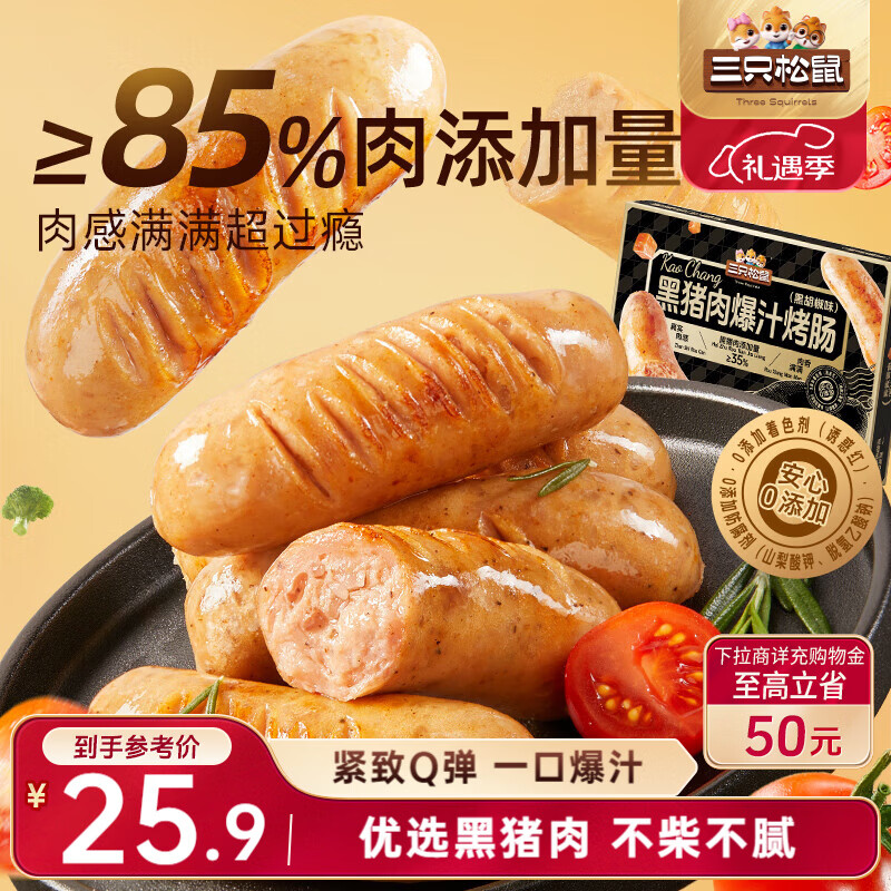 V扫 如有3-3奍 三只松鼠黑猪肉爆汁烤肠400g 入会价,弹2立减5.1