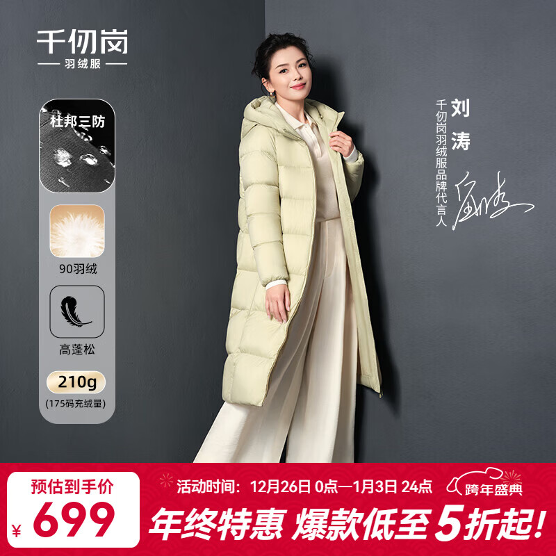 任选1款499 千仞岗刘涛同款过膝羽绒服 千仞岗云朵感羽绒服送挎包