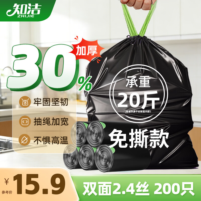 如有黑五200-20奍 plus 200-25奍 知洁抽绳垃圾袋黑绿