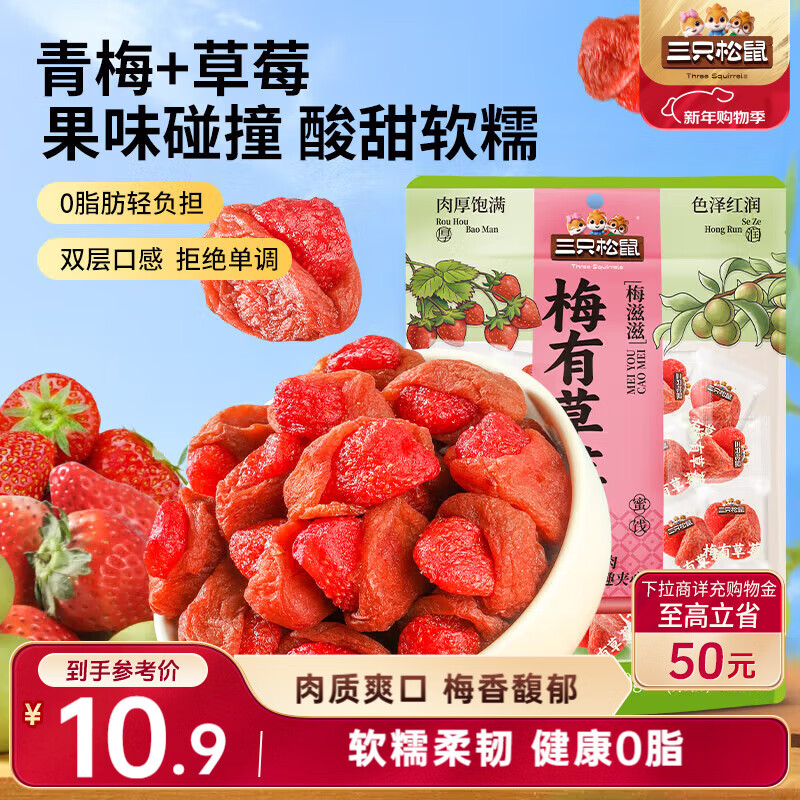 部分地区 三只松鼠梅子夹草莓100g即食混合3.9 三只松鼠高钙高蛋