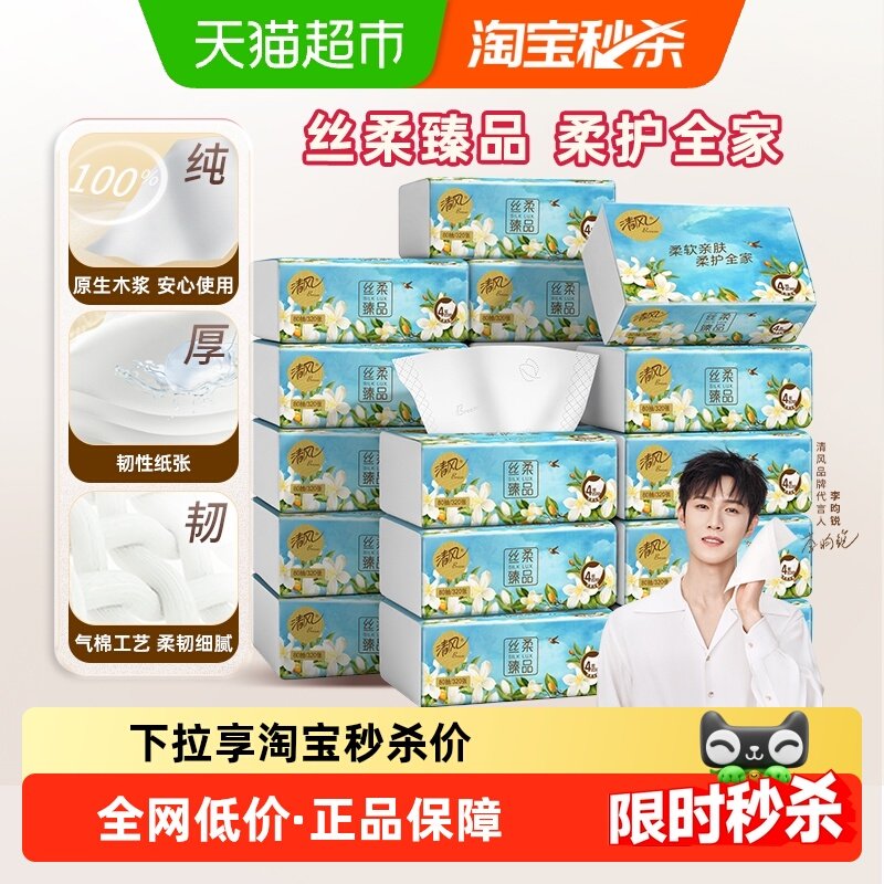 15.42亓清风抽纸丝柔花萃4层加厚80抽18包 我的桃宝-会貟中心-领1